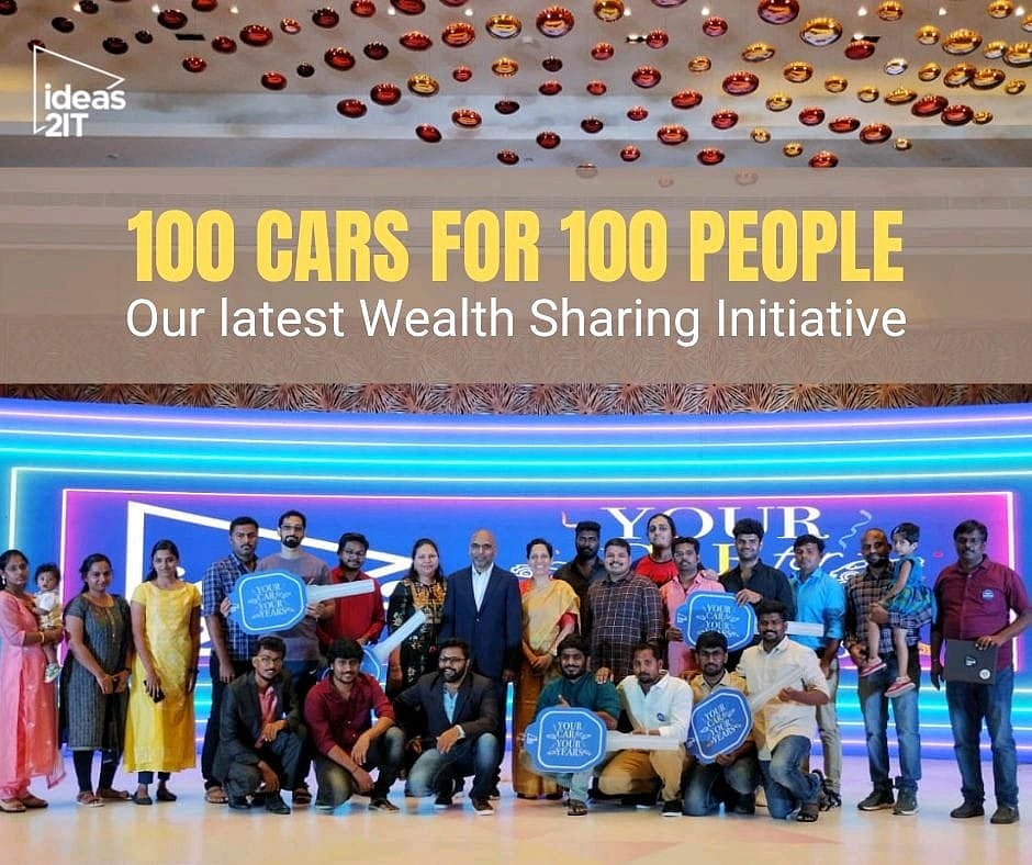 சென்னையை மையமாகக் கொண்டு இயங்கிவரு Ideas2IT, என்ற ஐடி நிறுவனத்தில் சுமார் 500 ஊழியர்கள் பணிபுரிகின்றனர். அவர்களில் நிறுவனத்தின் முன்னேற்றத்திற்காக சுமார் 10 ஆண்டுகளாக பணிபுரியும் 100 ஊழியர்களை தேர்வு செய்து அவர்களின் உழைப்பை பாராட்டி தலா ஒரு மாருதி சுசூகி காரை பரிசாக வழங்கி உள்ளது.